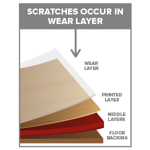 Using harsh cleaning agents or sliding furniture without leg tabs may damage the wear barrier.